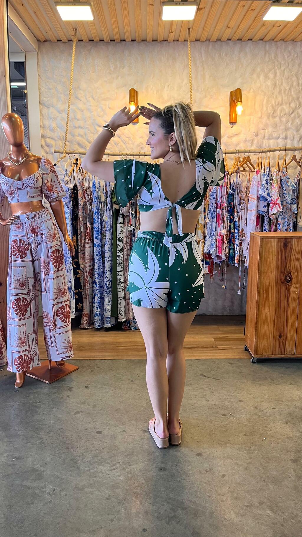 Conjunto Short saia e cropped alça